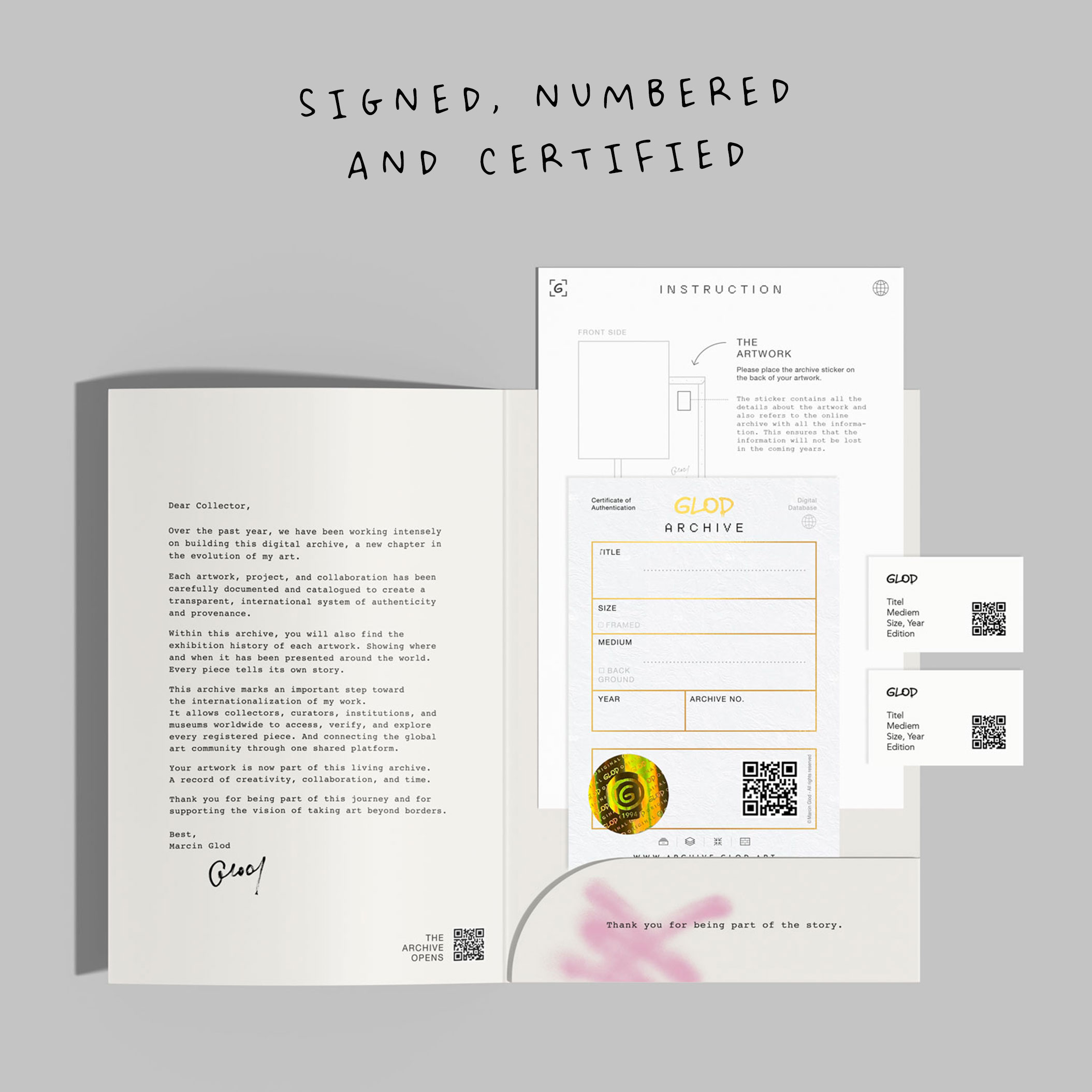 Each artwork is numbered and signed by Glod